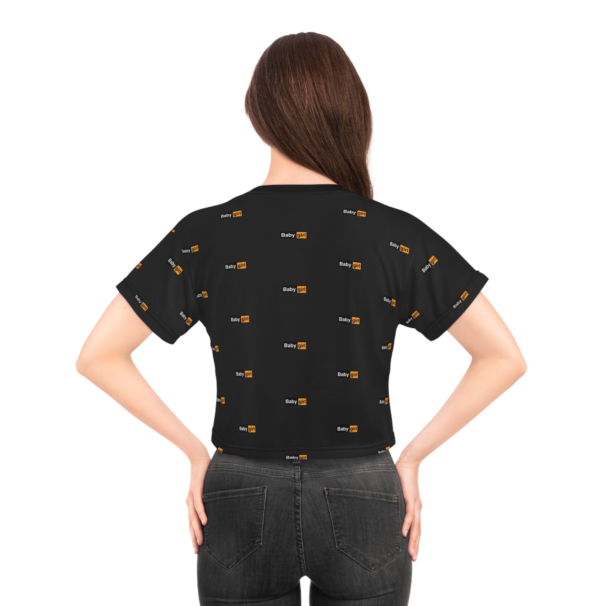 Baby Girl Crop Tee — Black All-Over Print Cute Logo Top